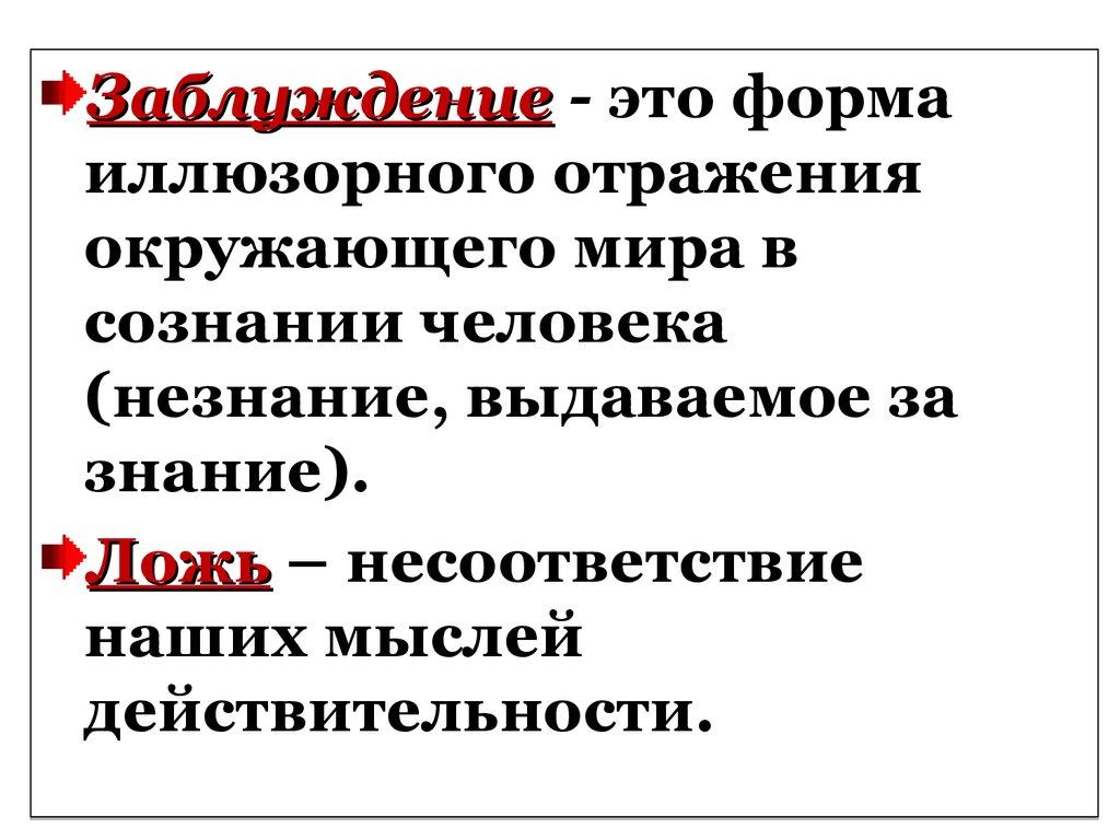 Заблуждение - это формаиллюзорного отражения