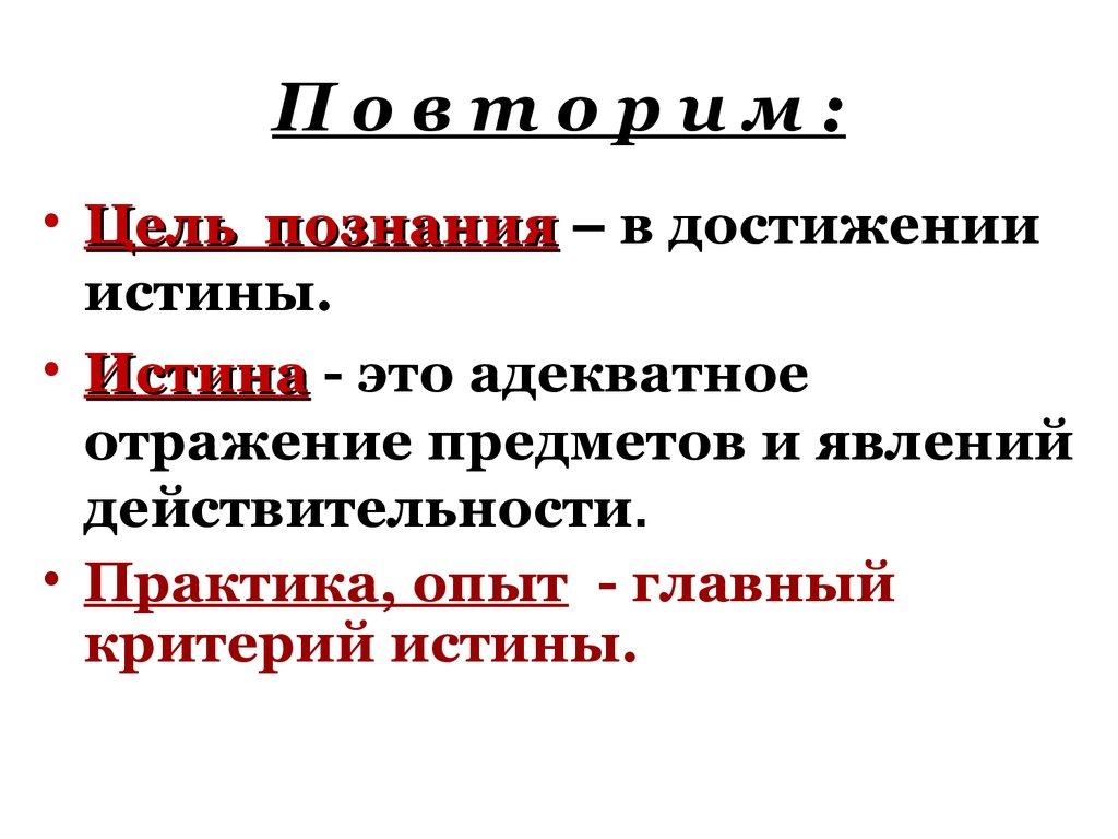Повторим:• Цель познания – в достижении