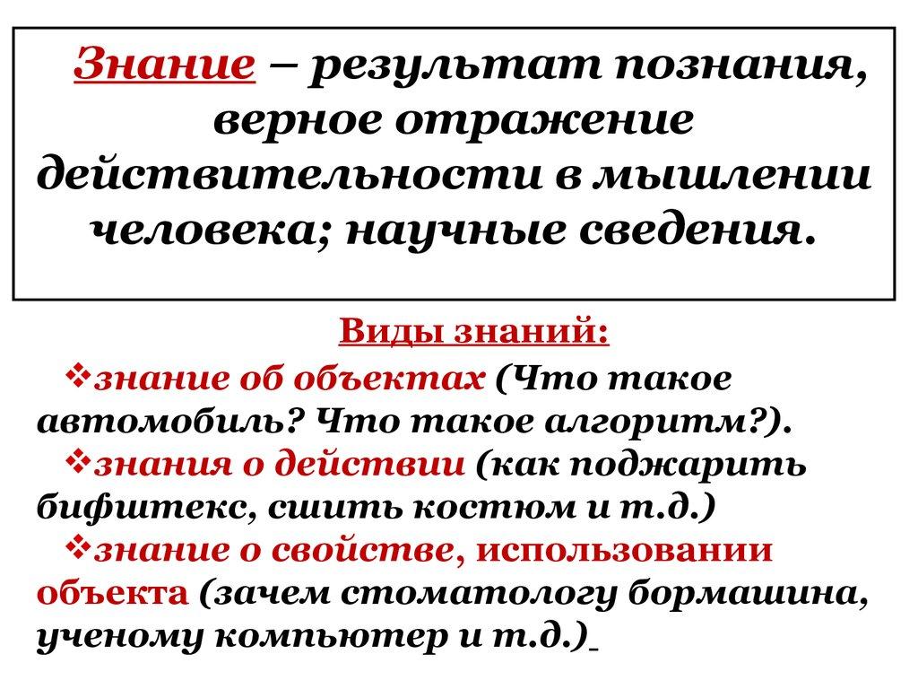.Знание – результат познания,