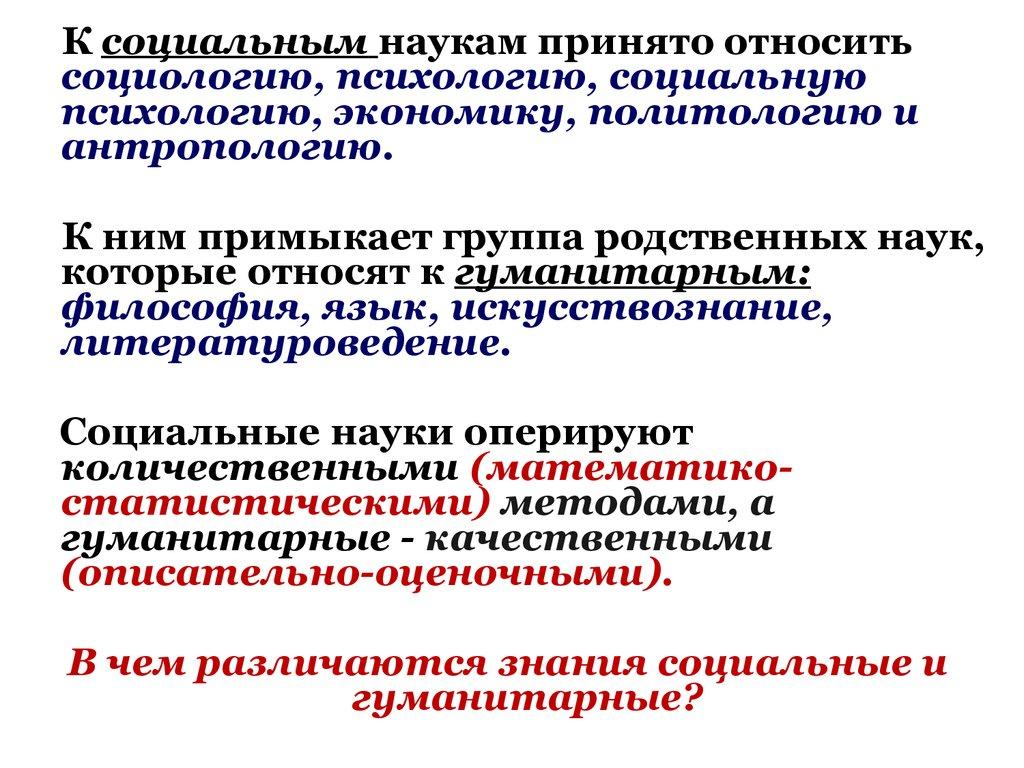 К социальным наукам принято относитьсоциологию, психологию, социальную