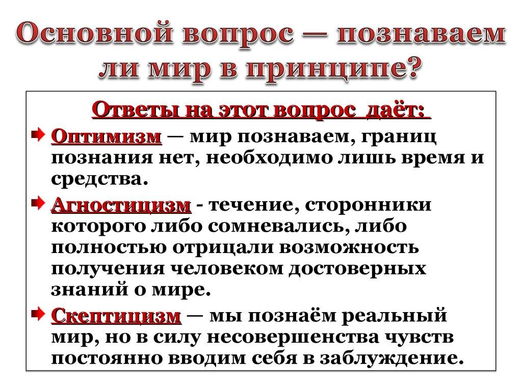 4. Основной вопрос — познаваем ли мир в принципе?