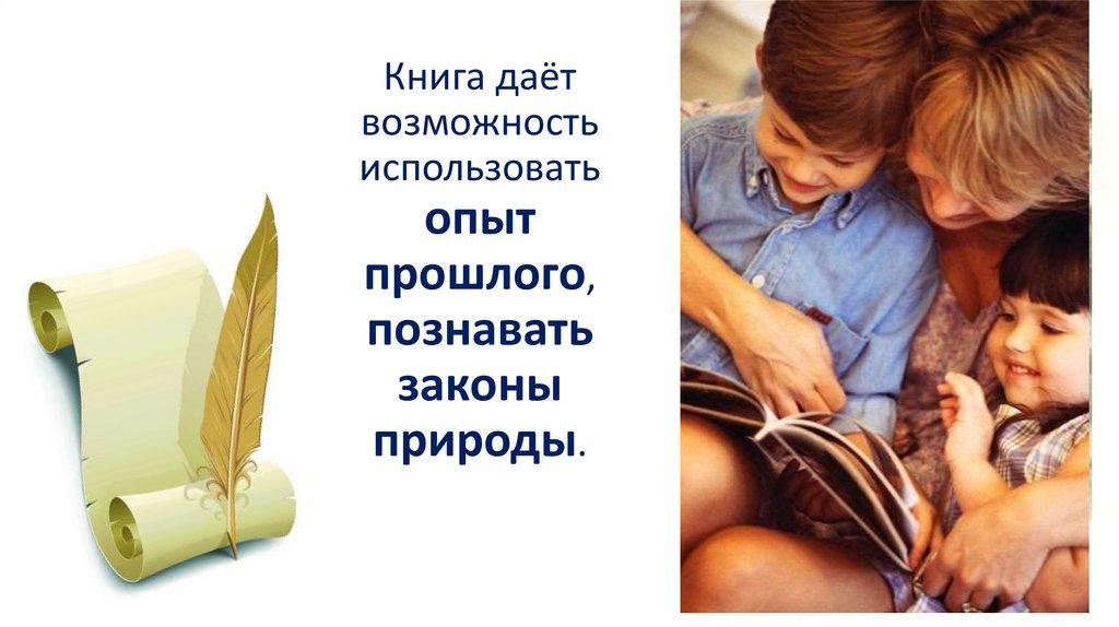 • Книга – не просто источникзнаний. Она даёт возможность