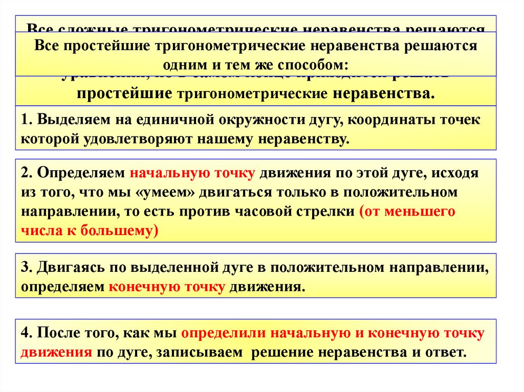 Все сложные тригонометрические неравенства решаютсяпростейшие