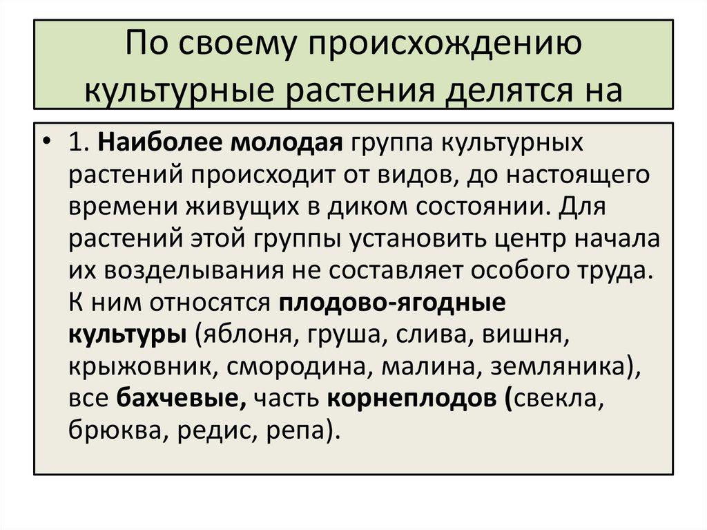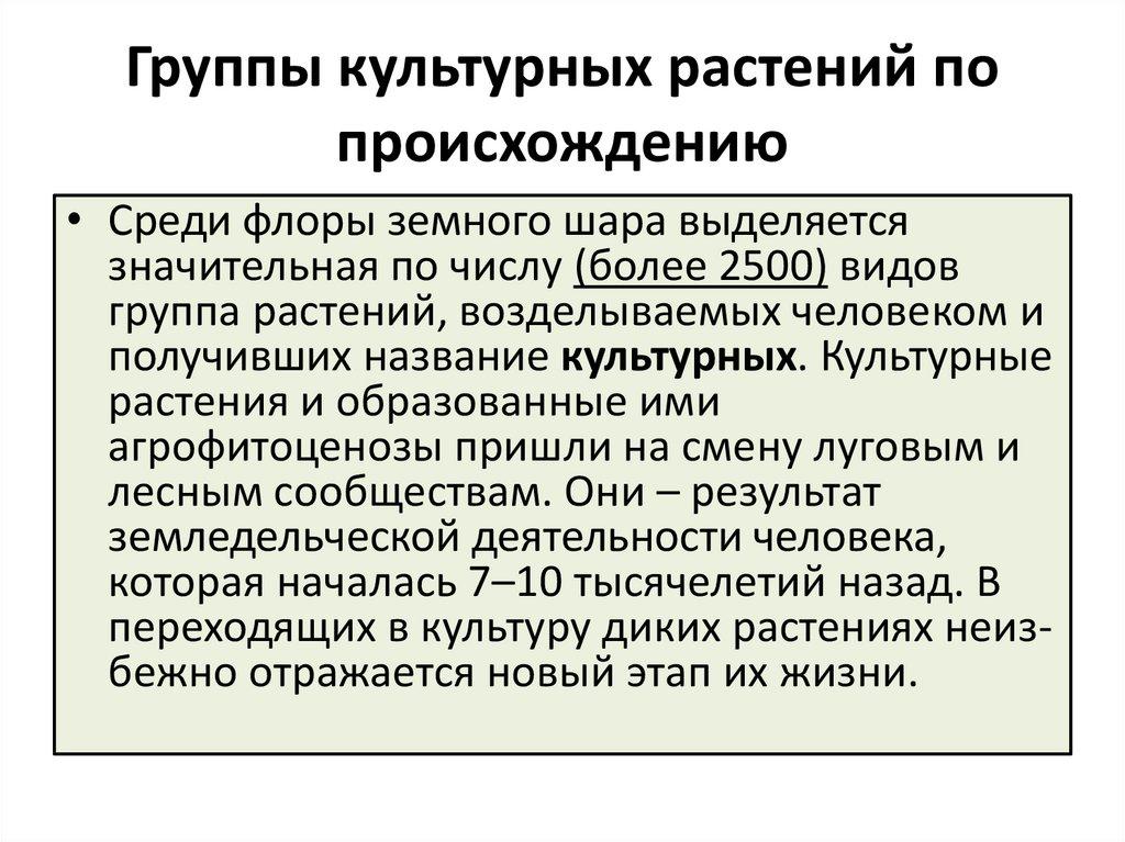 Проблема происхождения культурных растений – довольносложная, так как иногда невозможно установить их родину