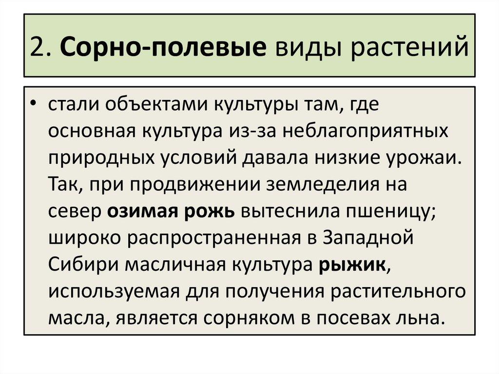 2. Сорно-полевые виды растений• стали объектами культуры там, где
