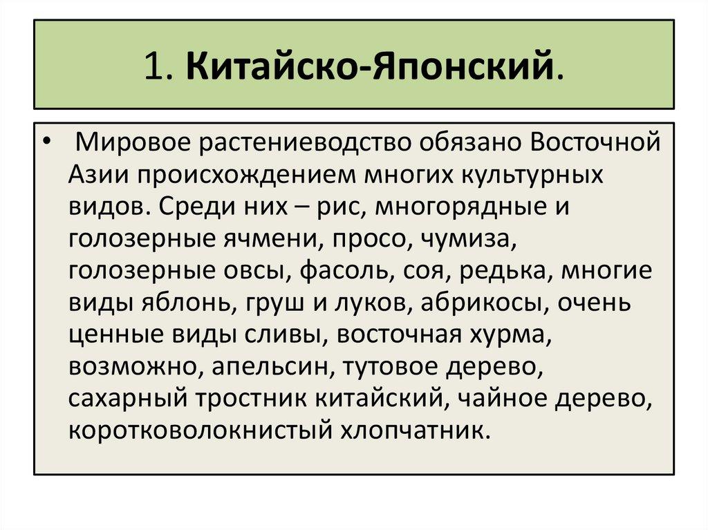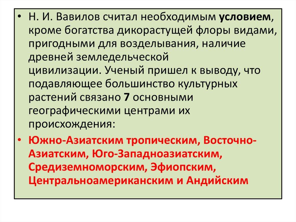 Учение Н.И. Вавилова о центрах происхождения культурных растений
