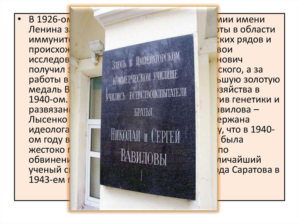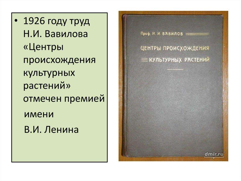 • В 1926-ом году Вавилов был удостоен премии имениЛенина за научно-исследовательские работы в области