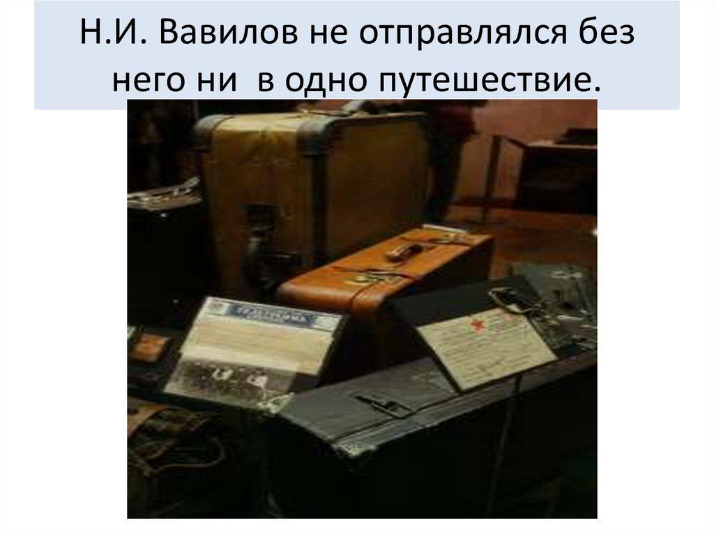 7. Н.И. Вавилов не отправлялся без него ни в одно путешествие.