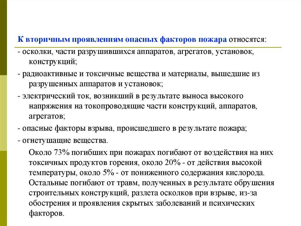 - опасные факторы взрыва, происшедшего в результате пожара;
