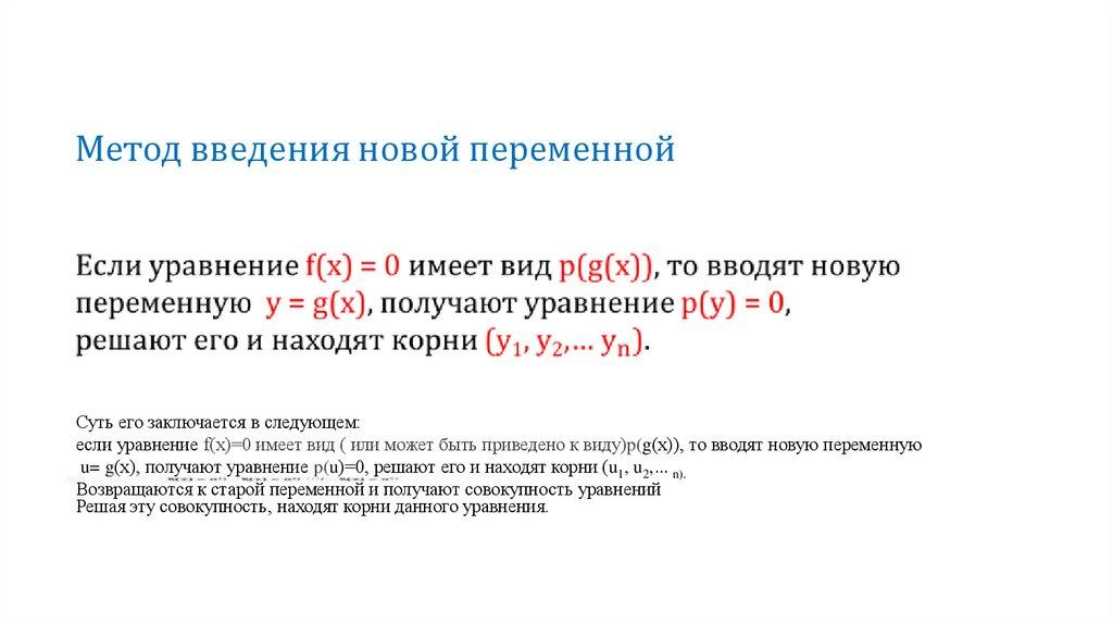 Метод введения новой переменнойСуть его заключается в следующем: