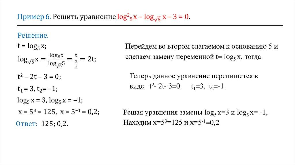 Решение.t = log5 х;