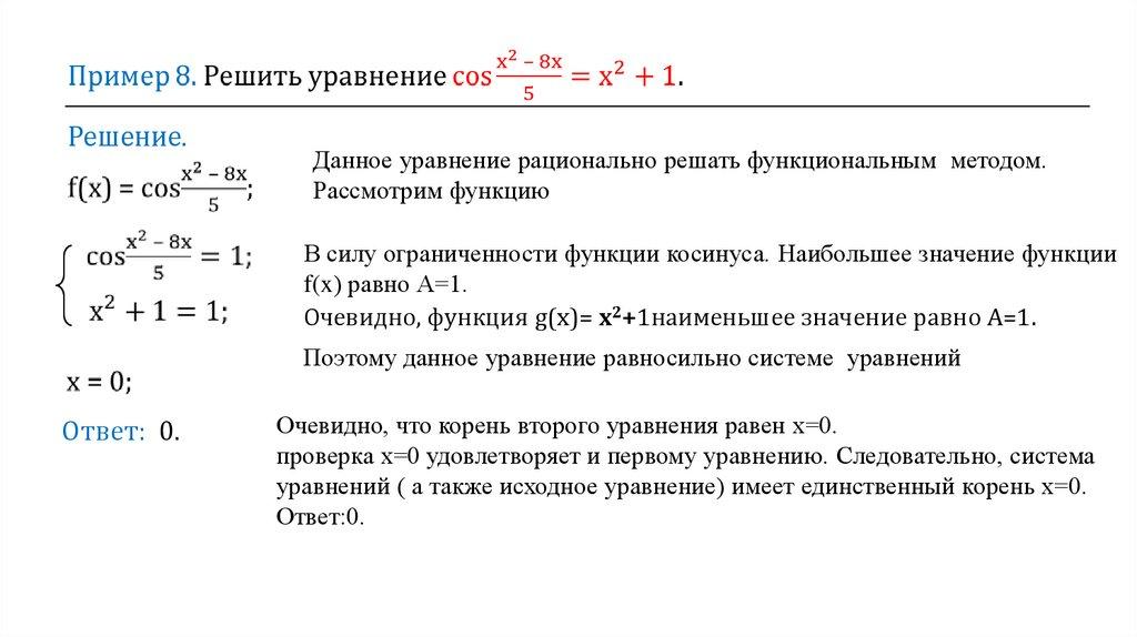 f(x)мах= А g(x)мin= A, то уравнение f(x) = g(x) равносильно системе