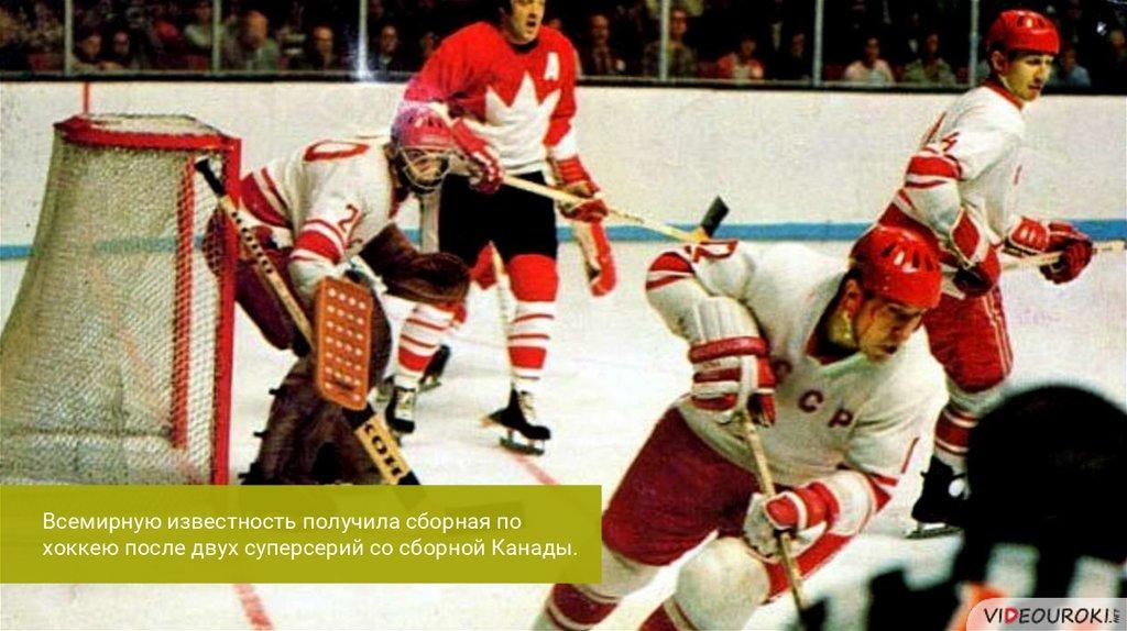 Всемирную известность получила сборная похоккею после двух суперсерий со сборной Канады.