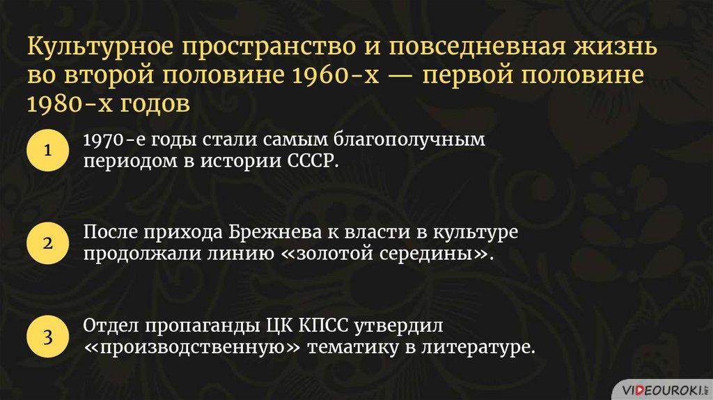 Культурное пространство и повседневная жизнь во второй половине 1960-х — первой половине 1980-х годов