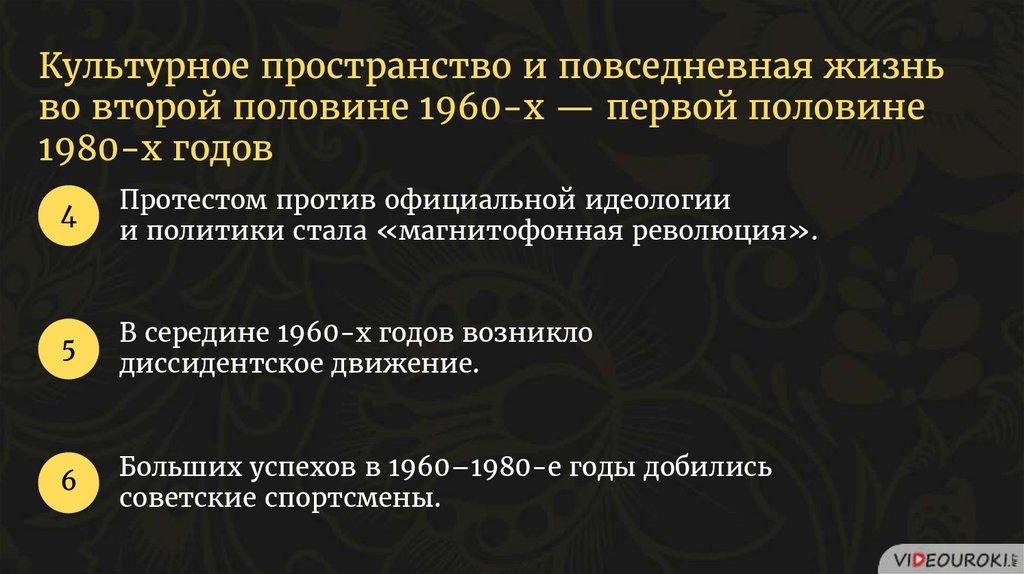 Культурное пространство и повседневная жизньво второй половине 1960-х — первой половине