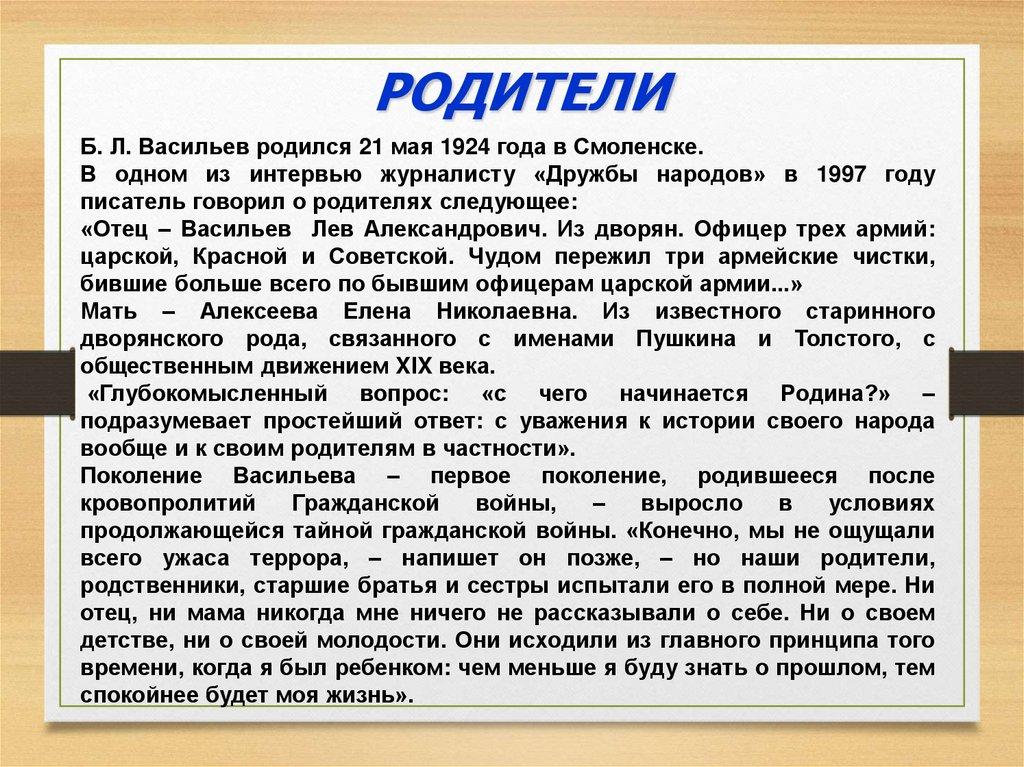 РОДИТЕЛИБ. Л. Васильев родился 21 мая 1924 года в Смоленске.