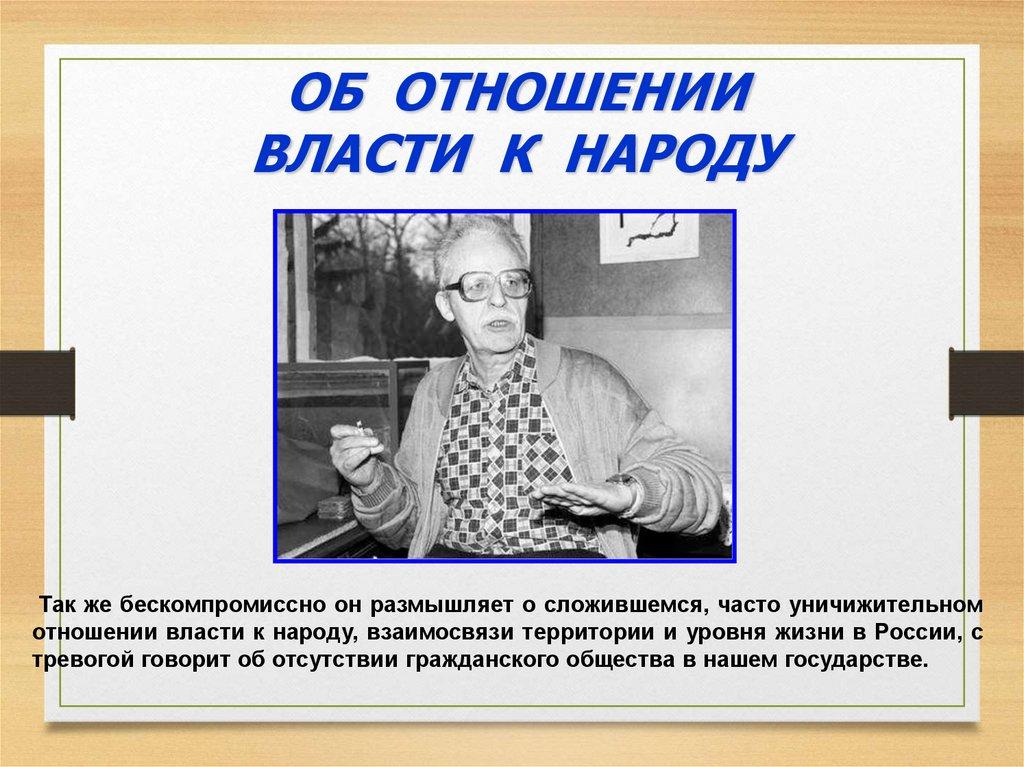 отношении власти к народу, взаимосвязи территории и уровня жизни в России, с