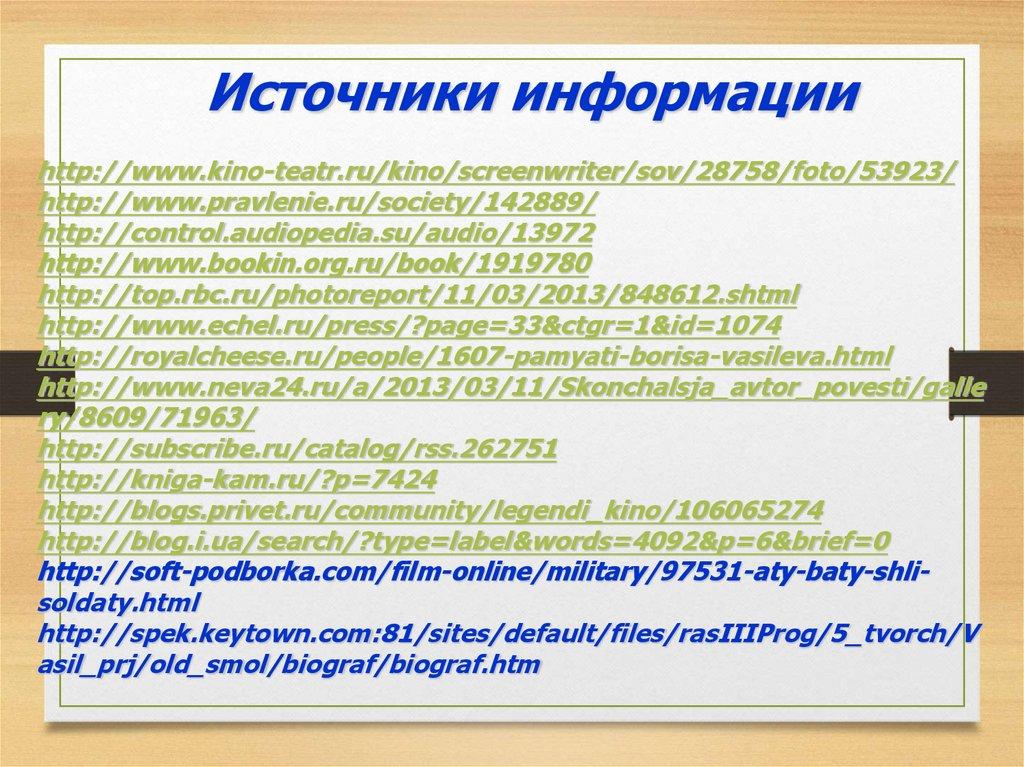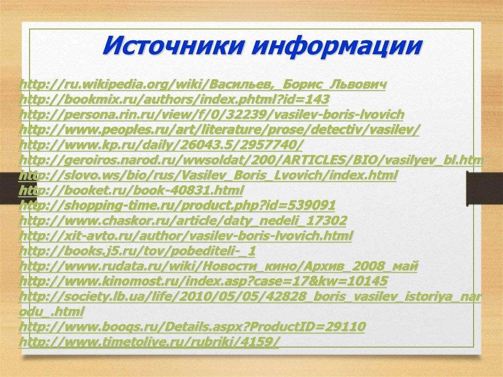 Источники информацииhttp://ru.wikipedia.org/wiki/Васильев,_Борис_Львович