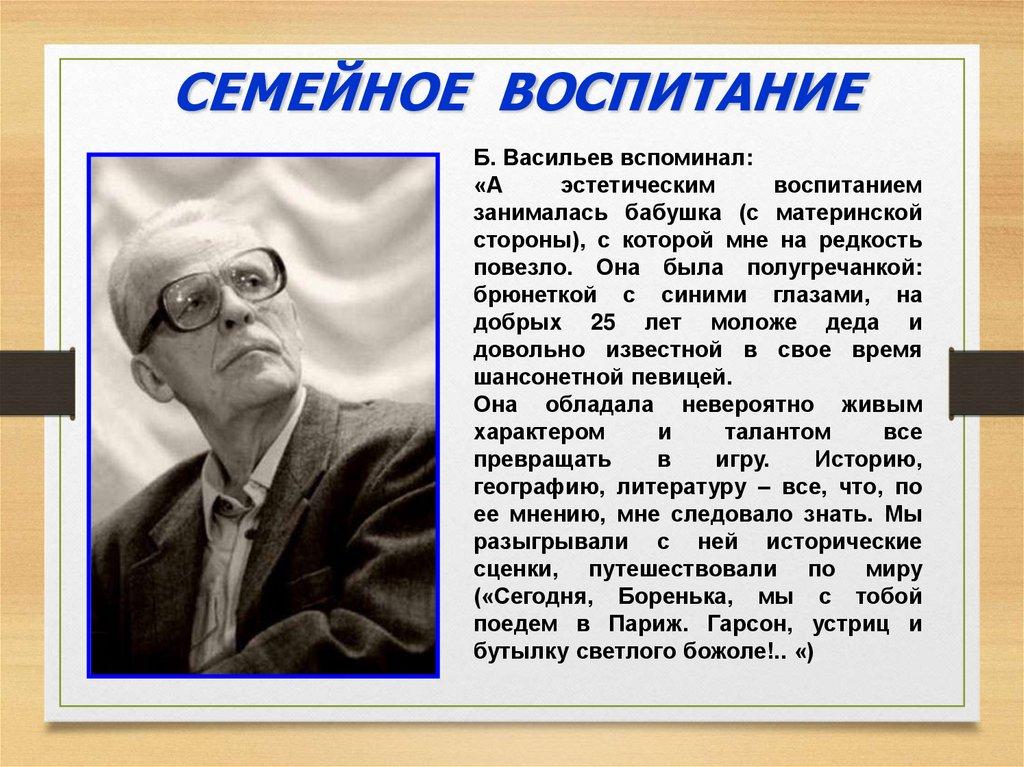 СЕМЕЙНОЕ ВОСПИТАНИЕБ. Васильев вспоминал: