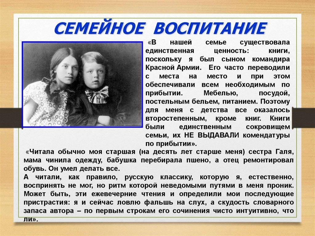 СЕМЕЙНОЕ ВОСПИТАНИЕНа вопрос о том, какую роль играло семейное воспитание в его