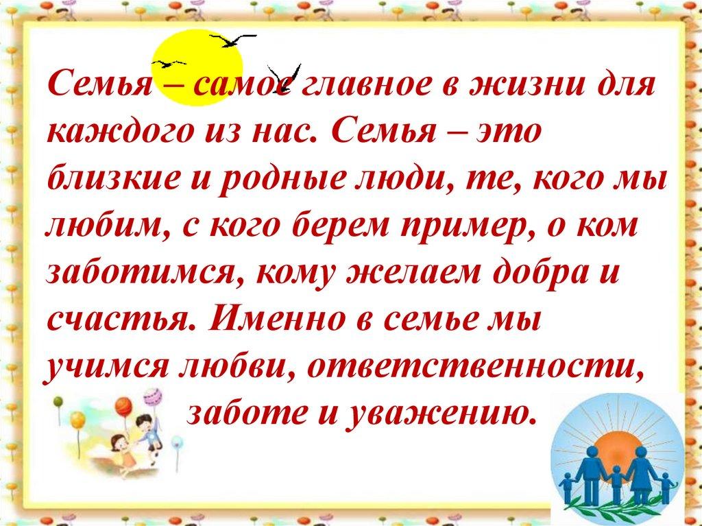 Семья – самое главное в жизни длякаждого из нас. Семья – это