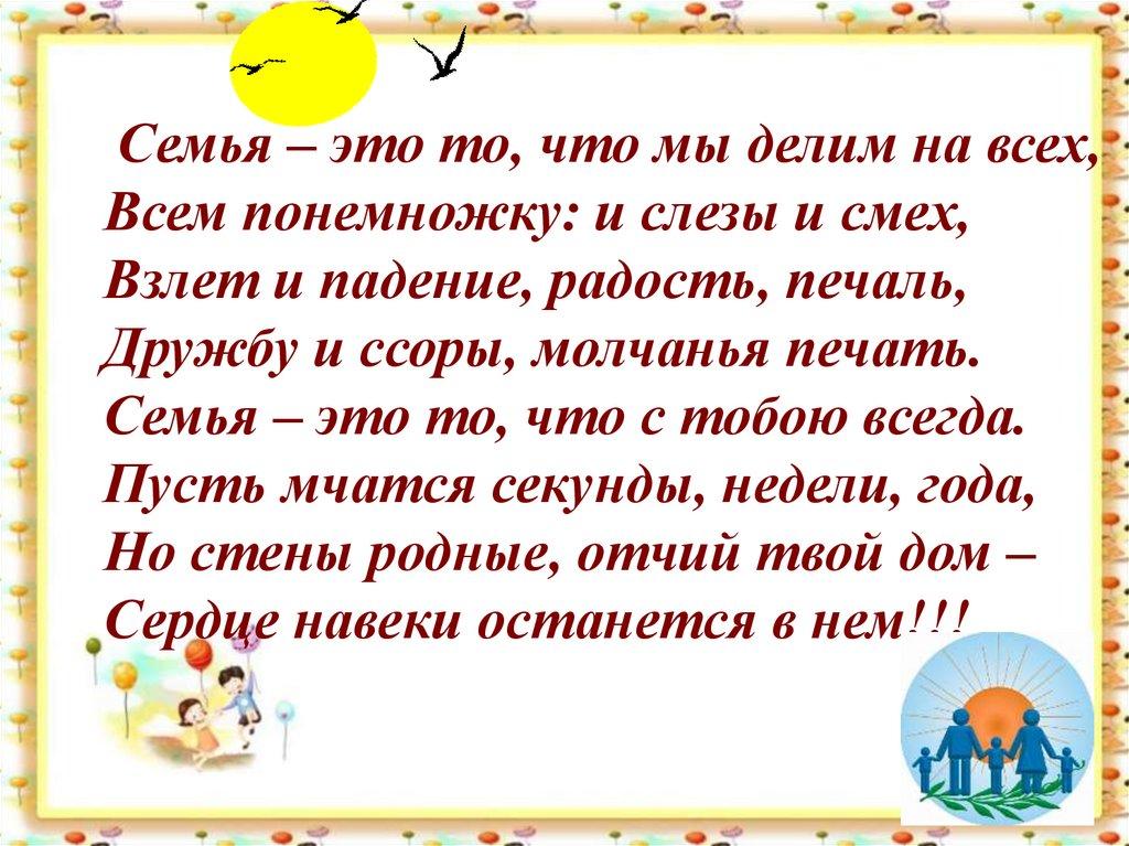 Семья – это то, что мы делим на всех,Всем понемножку: и слезы и смех,