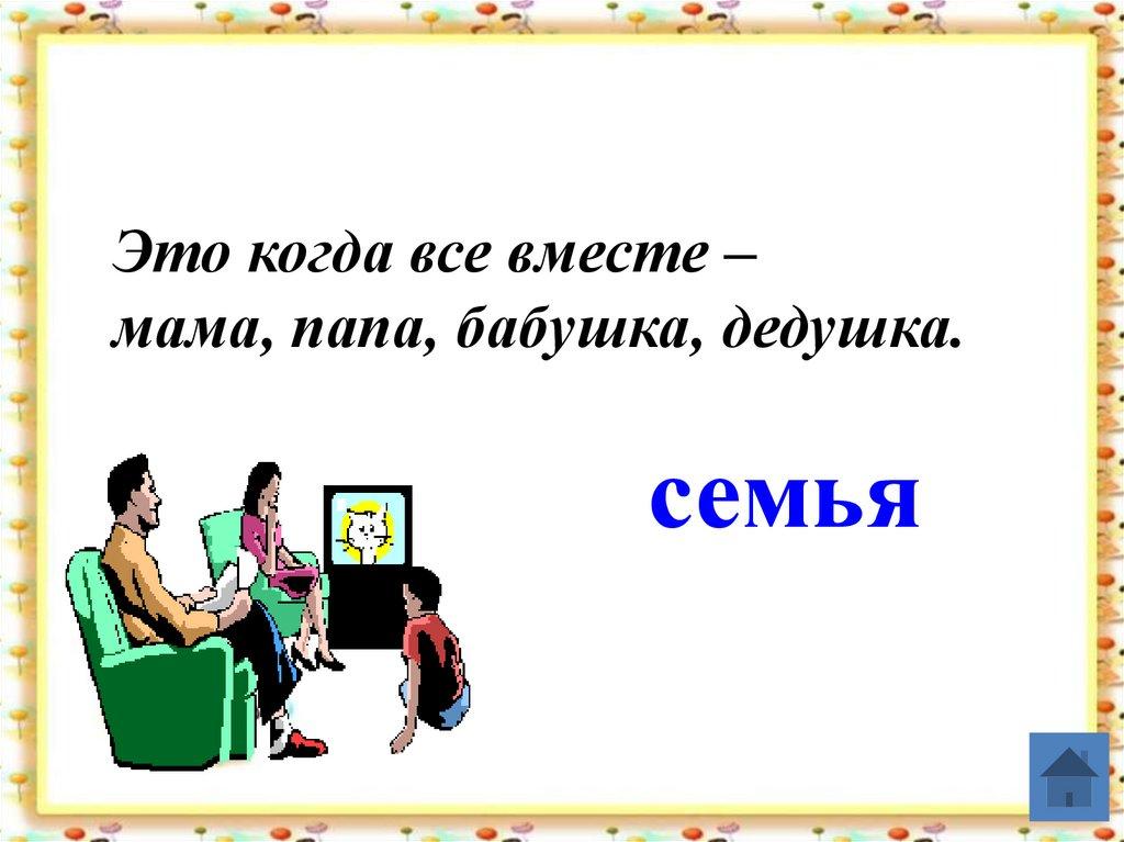 Это когда все вместе –мама, папа, бабушка, дедушка.