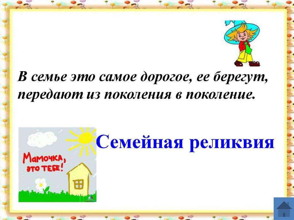 В семье это самое дорогое, ее берегут,передают из поколения в поколение.