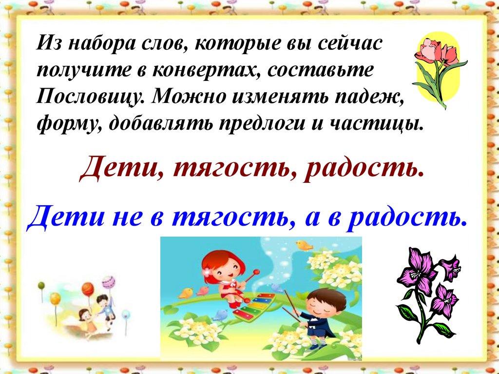 Из набора слов, которые вы сейчасполучите в конвертах, составьте