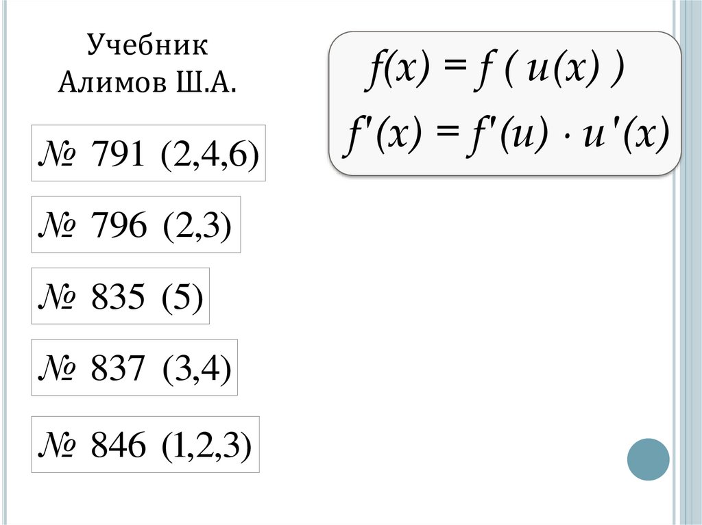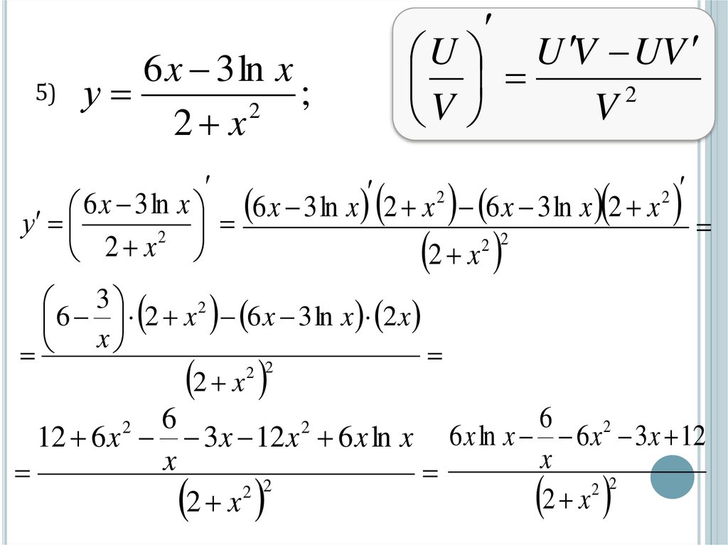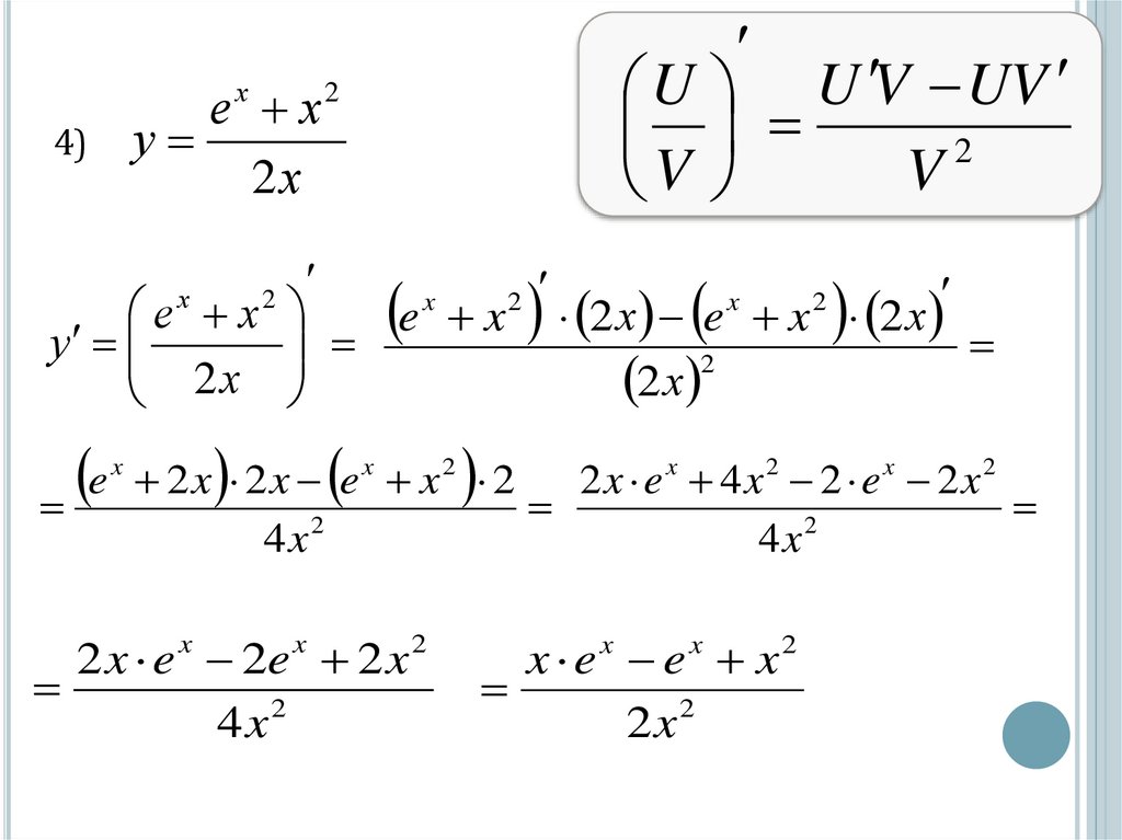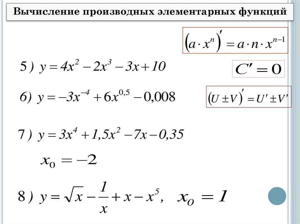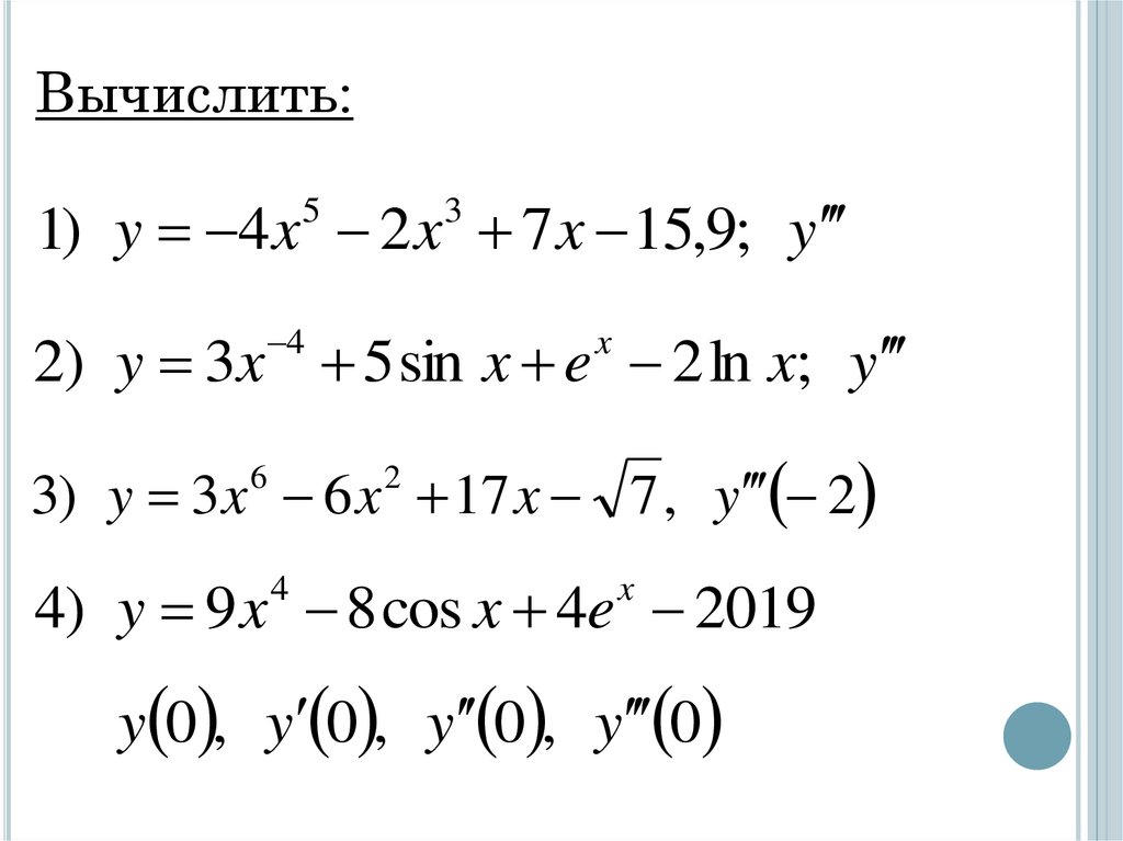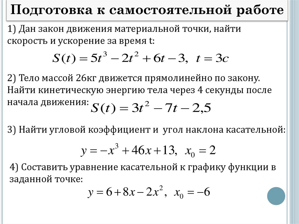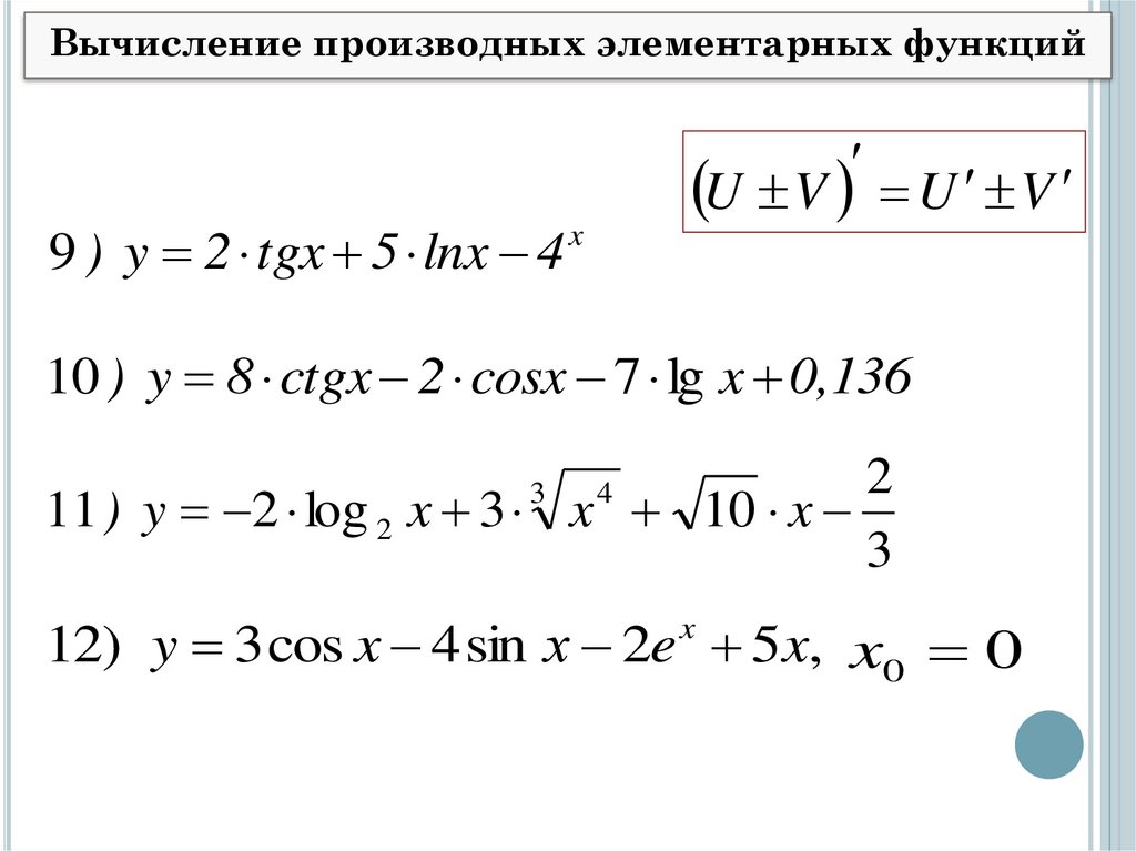 Подготовка к контрольной работе2) Найти чему равна производная функции в заданной точке: