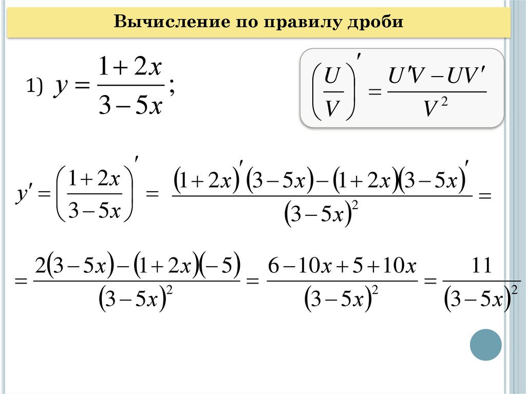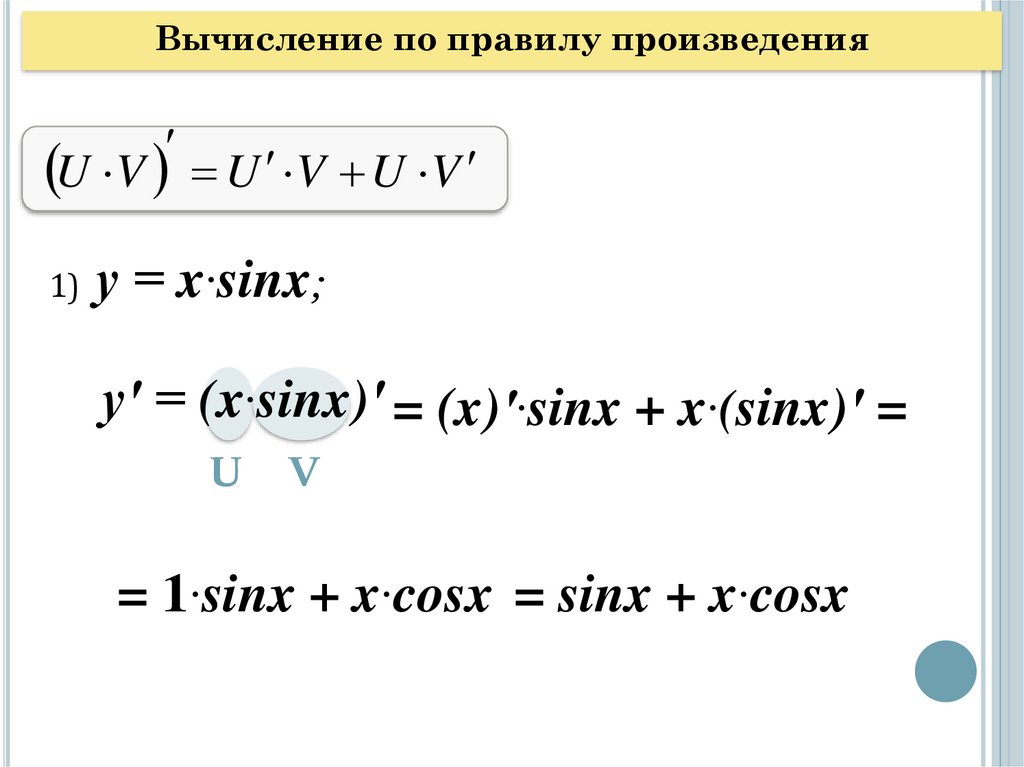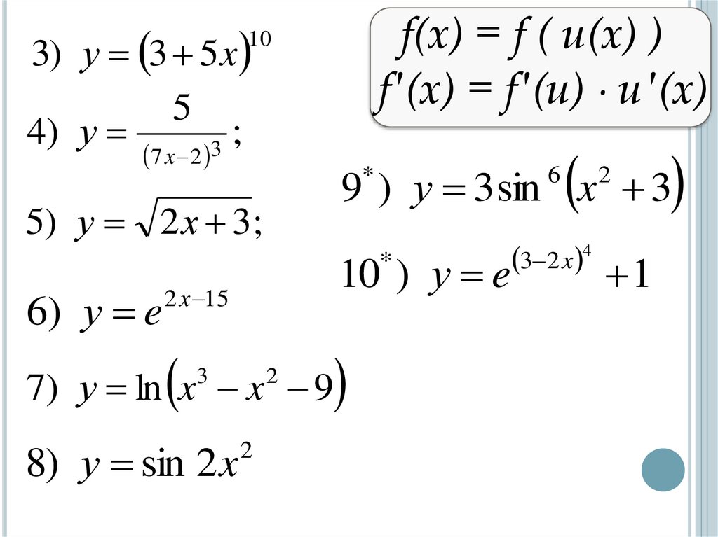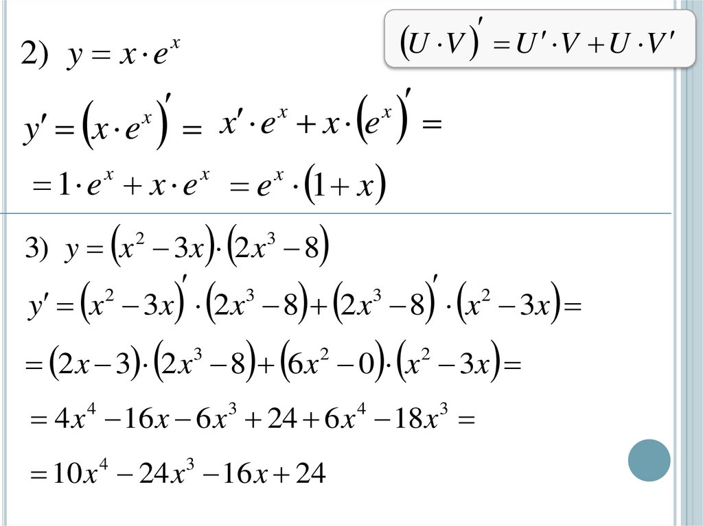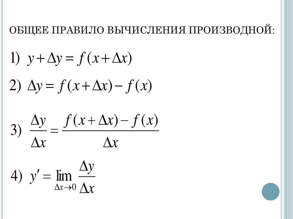 ОБЩЕЕ ПРАВИЛО ВЫЧИСЛЕНИЯ ПРОИЗВОДНОЙ:1) y y f ( x x)