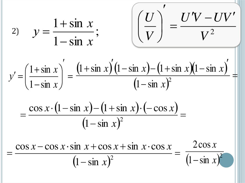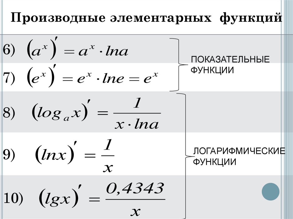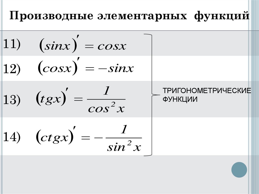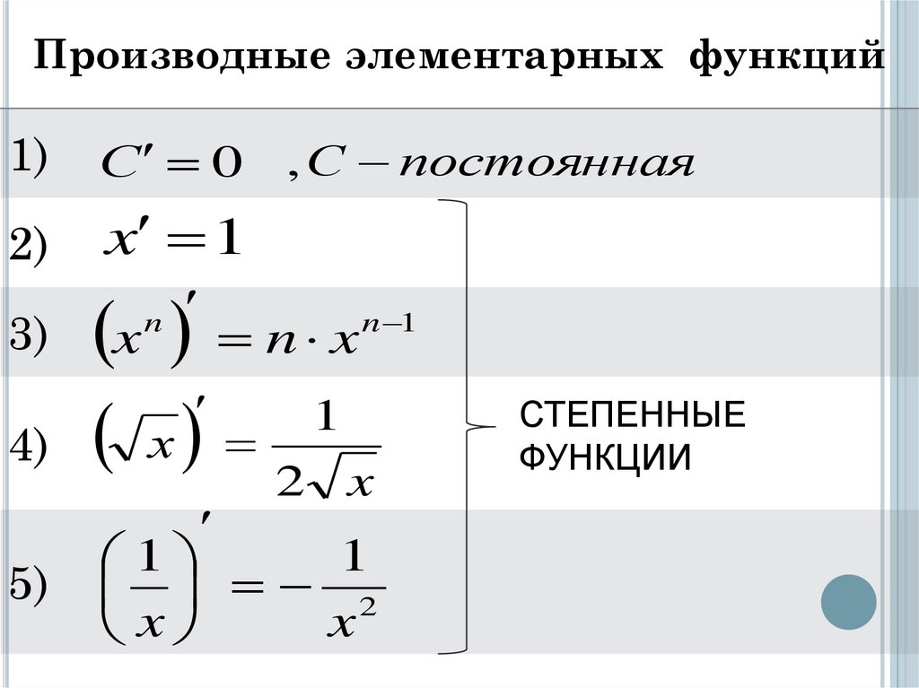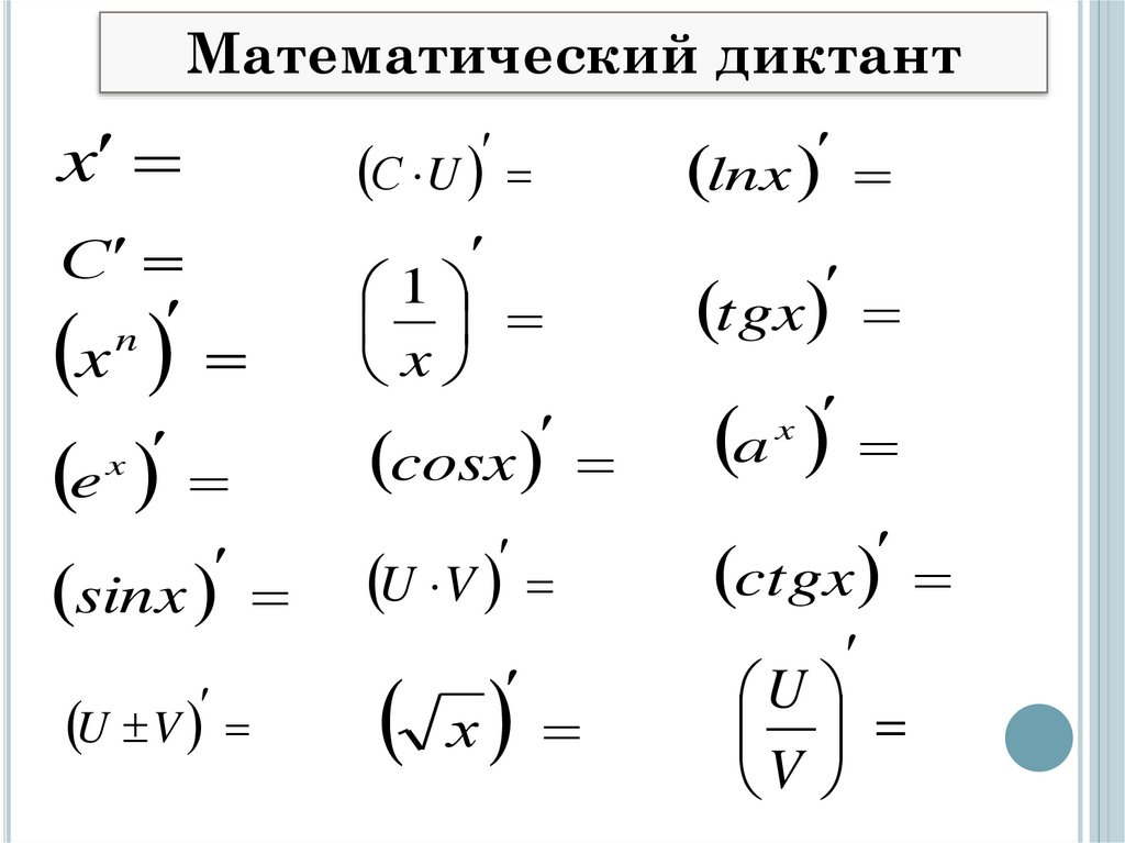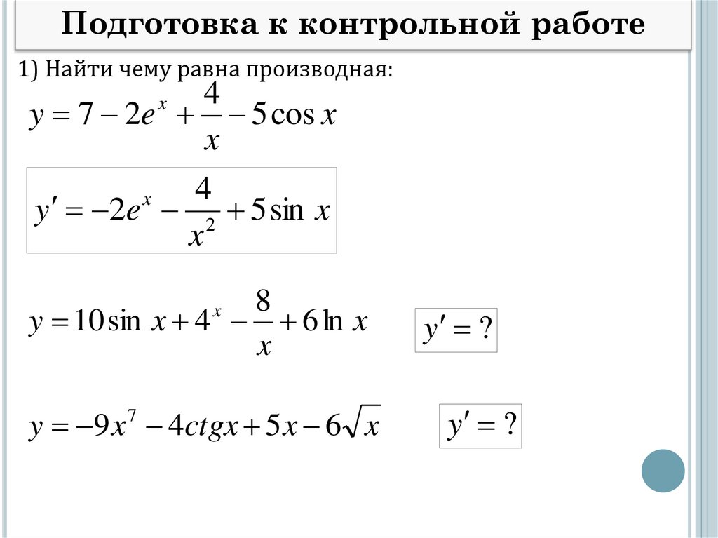 Подготовка к контрольной работе1) Найти чему равна производная: