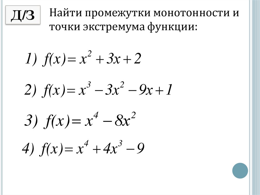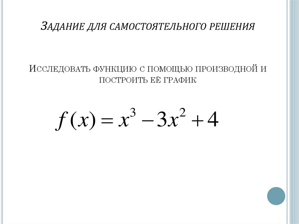 ЗАДАНИЕ ДЛЯ САМОСТОЯТЕЛЬНОГО РЕШЕНИЯИССЛЕДОВАТЬ ФУНКЦИЮ С ПОМОЩЬЮ ПРОИЗВОДНОЙ И