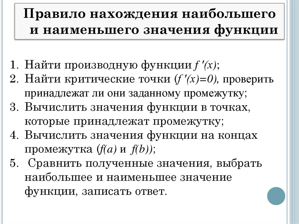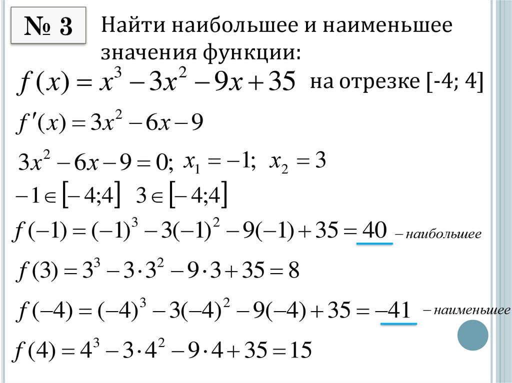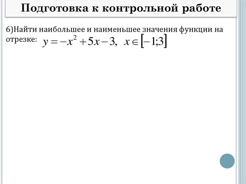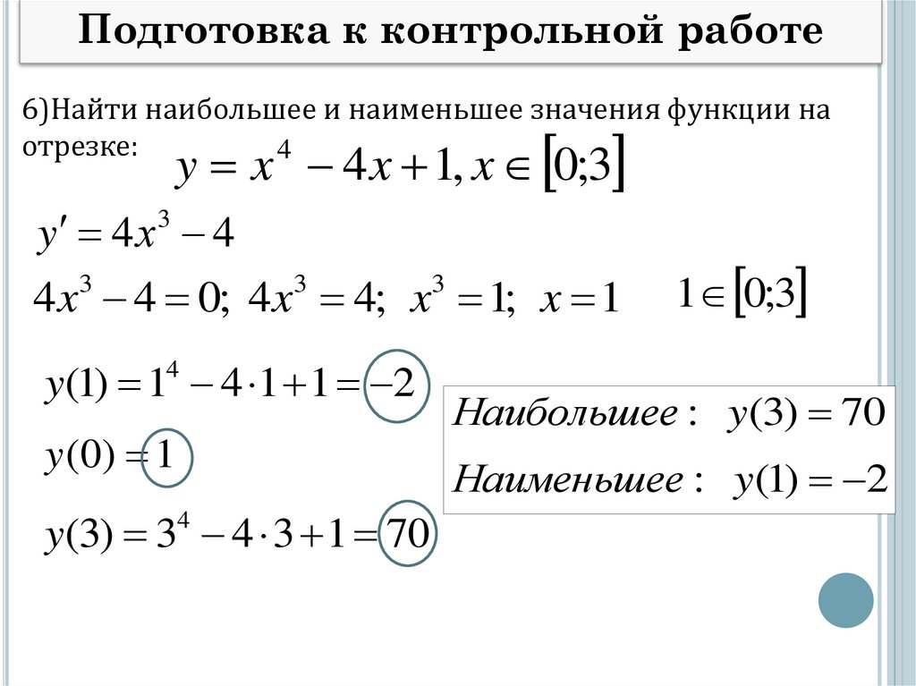Подготовка к контрольной работе6)Найти наибольшее и наименьшее значения функции на