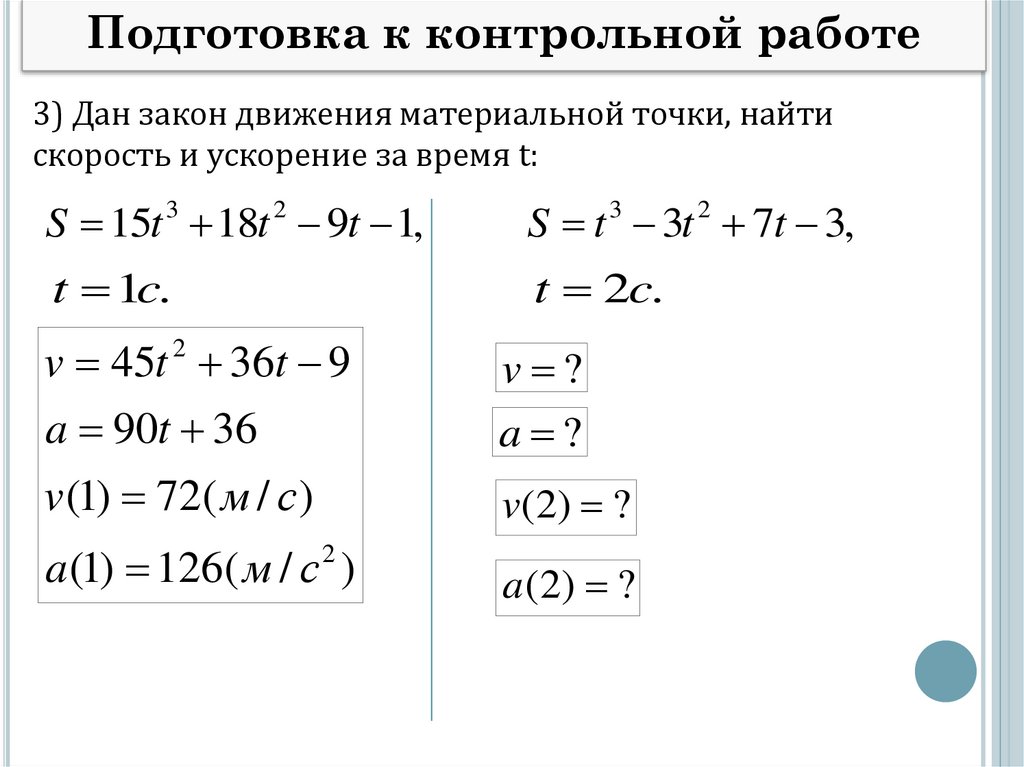 Подготовка к контрольной работе3) Дан закон движения материальной точки, найти