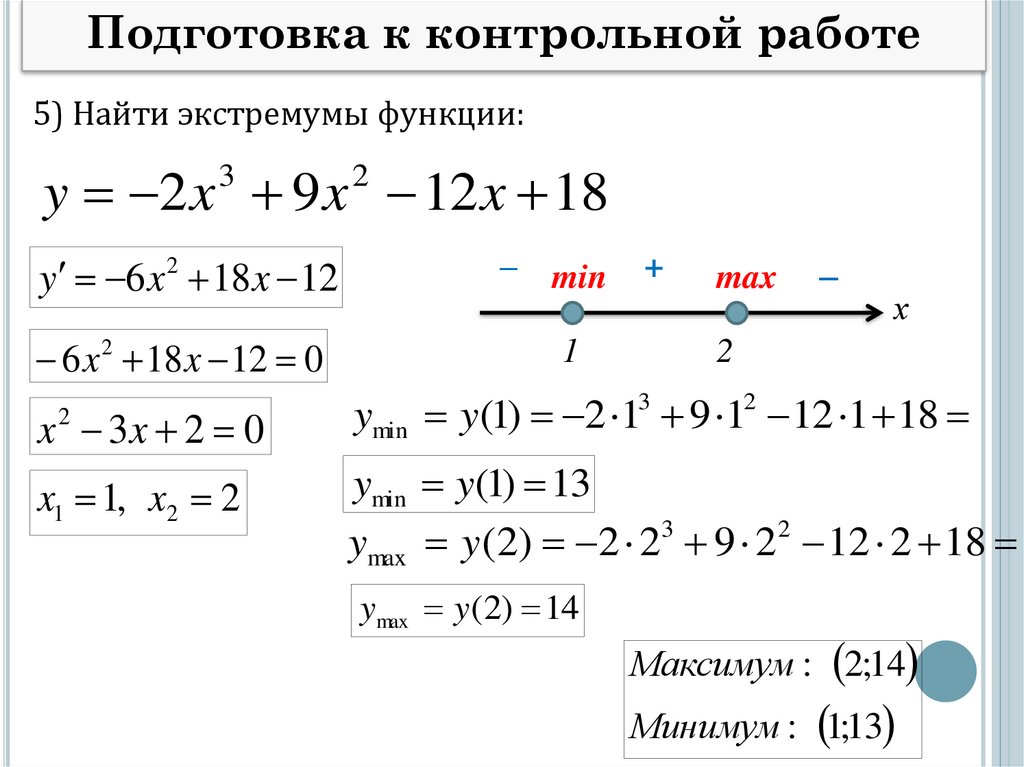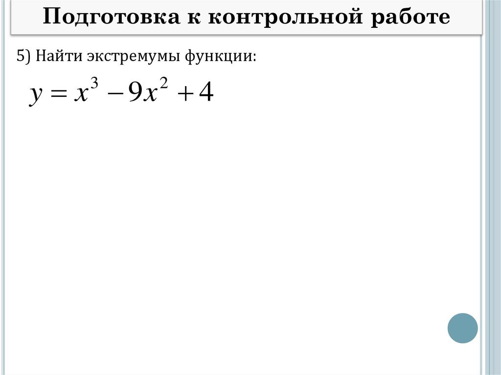 Подготовка к контрольной работе5) Найти экстремумы функции: