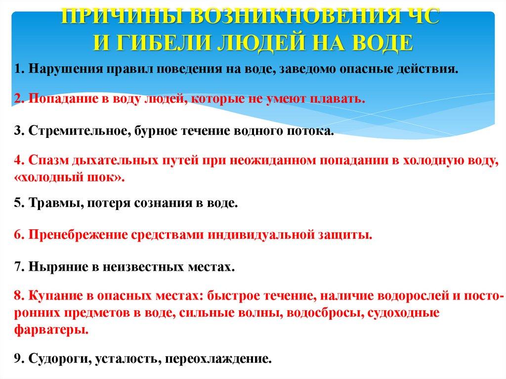 ПРИЧИНЫ ВОЗНИКНОВЕНИЯ ЧСИ ГИБЕЛИ ЛЮДЕЙ НА ВОДЕ
