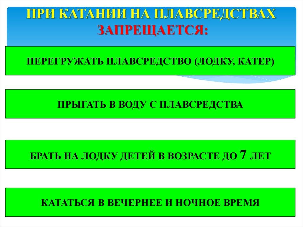 ПРИ КАТАНИИ НА ПЛАВСРЕДСТВАХЗАПРЕЩАЕТСЯ: