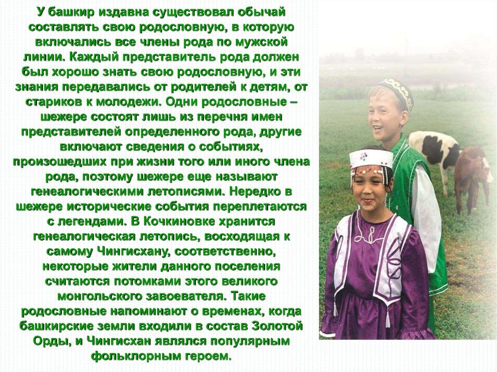 У башкир издавна существовал обычайсоставлять свою родословную, в которую