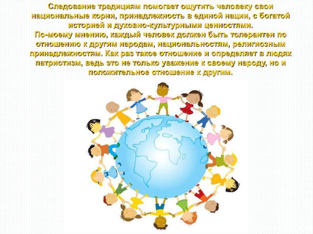 Следование традициям помогает ощутить человеку своинациональные корни, принадлежность в единой нации, с богатой