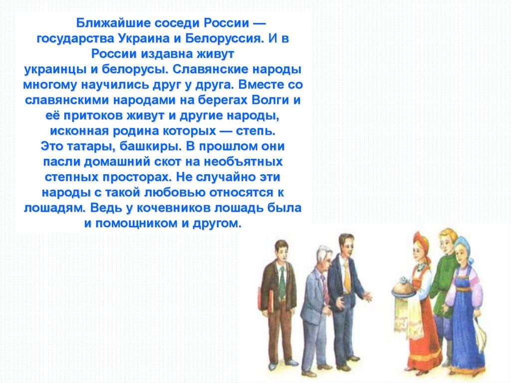 Ближайшие соседи России —государства Украина и Белоруссия. И в