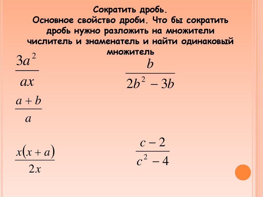 Сократить дробь.Основное свойство дроби. Что бы сократить
