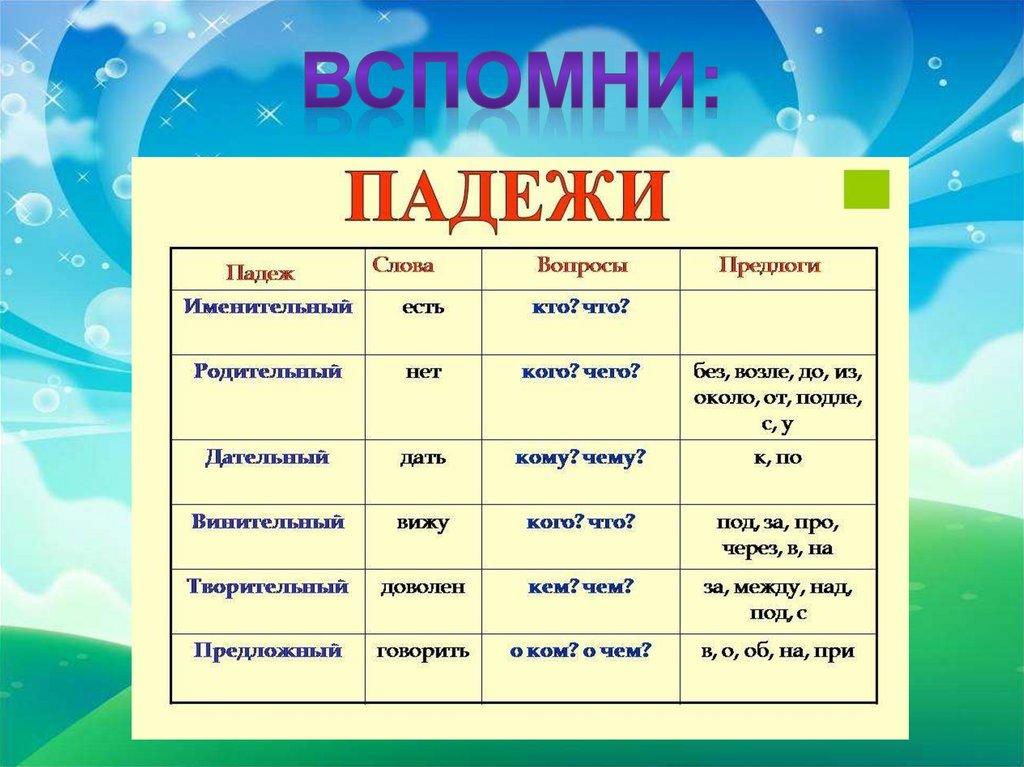 ТРЕНАЖЁРОпределение падежа имён
