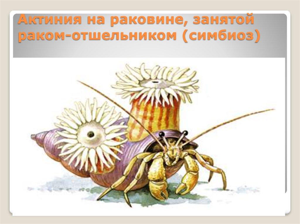 15. Актиния на раковине, занятой раком-отшельником (симбиоз)