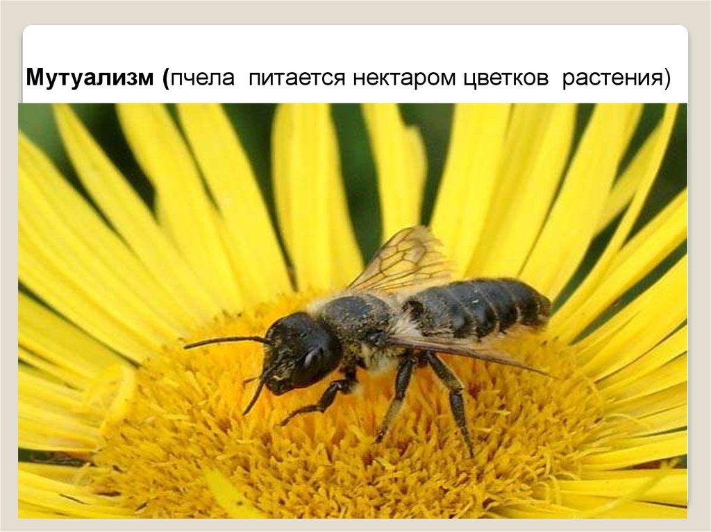 Мутуализм (пчела питается нектаром цветков растения)18.