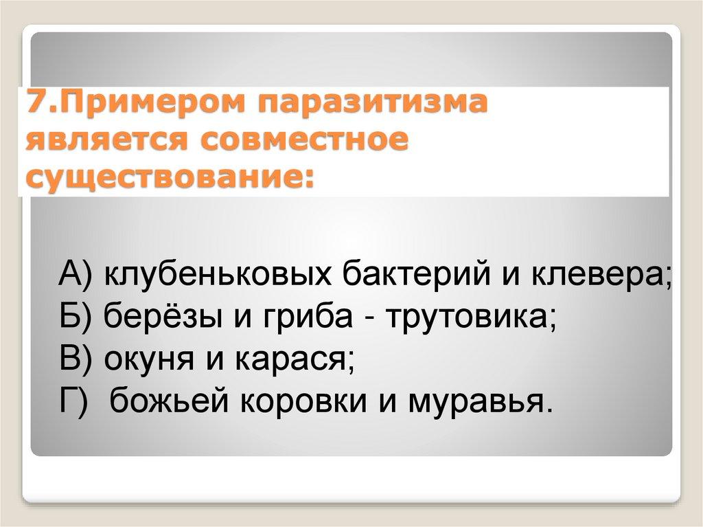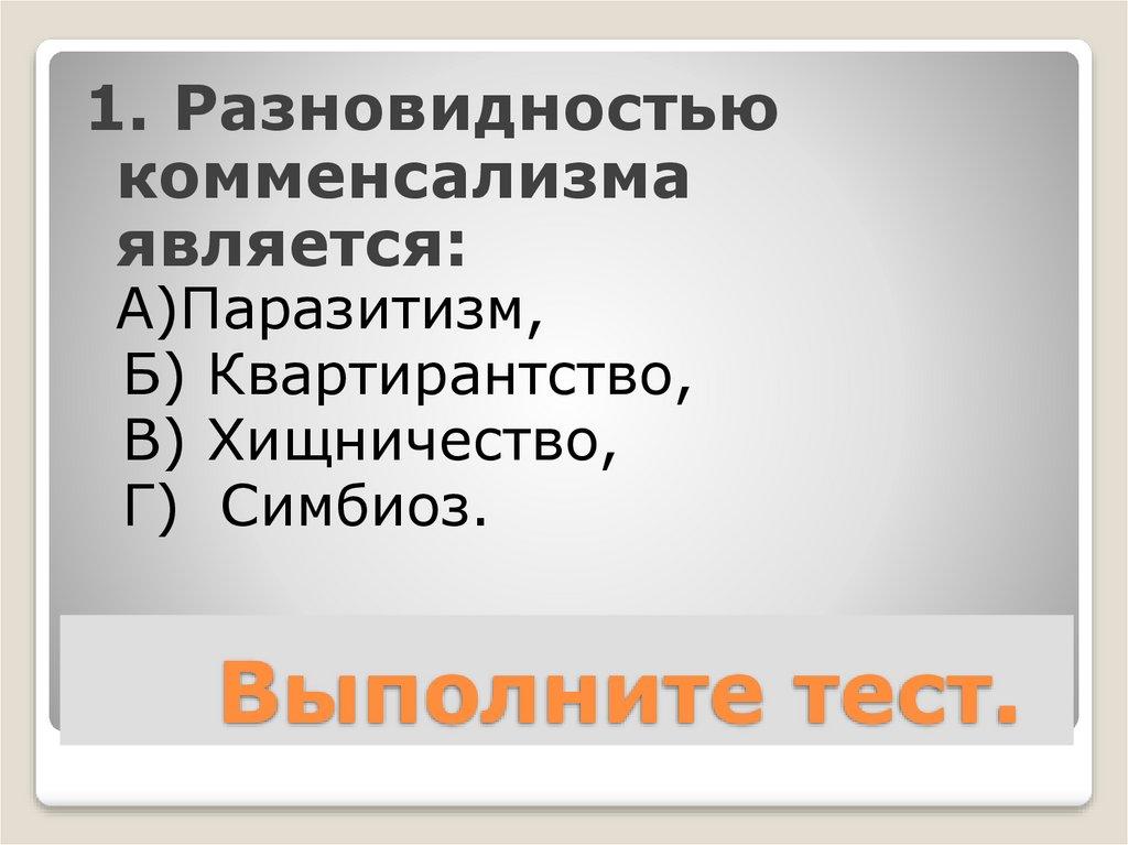Нахлебничество(акула и рыбаприлипала)24. Выполните тест.