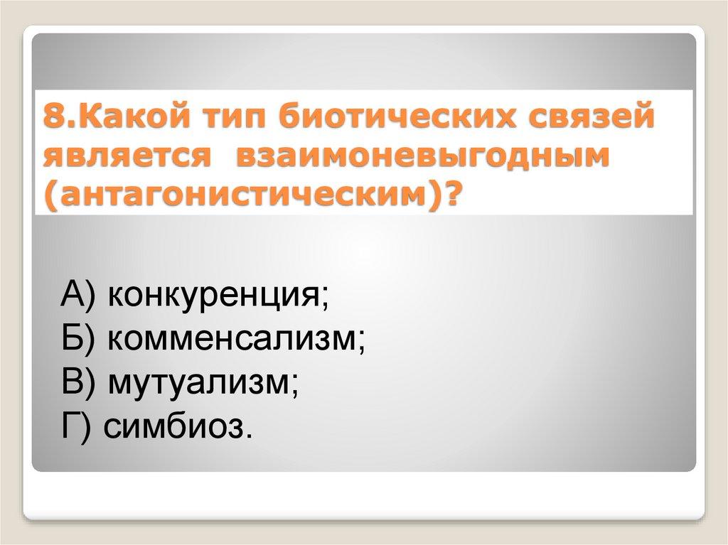 31. 8.Какой тип биотических связей является взаимоневыгодным (антагонистическим)?