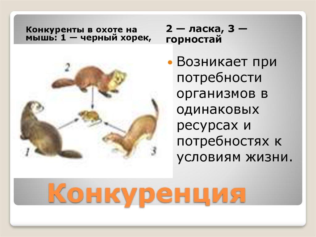 Конкуренты в охоте намышь: 1 — черный хорек,