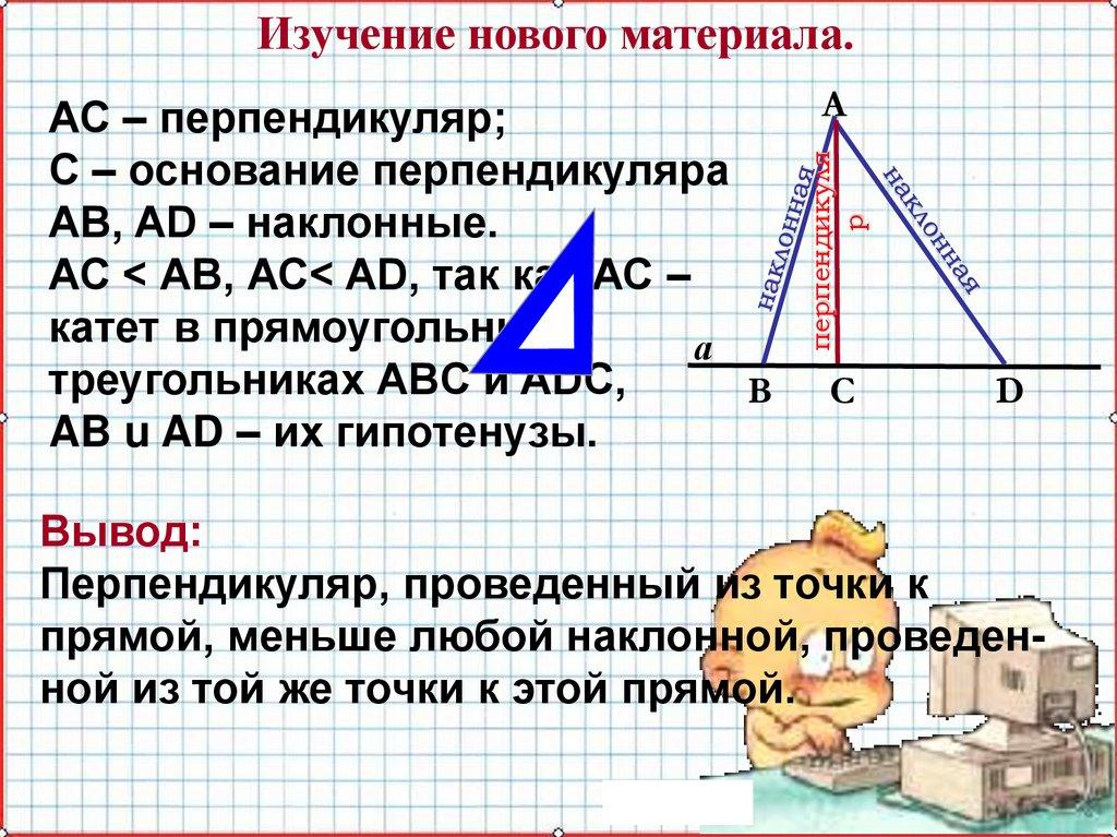 прямой, меньше любой наклонной, проведенной из той же точки к этой прямой.