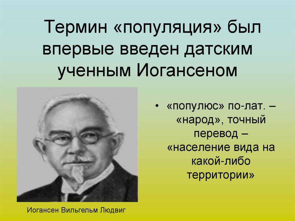 1. Термин «популяция» был впервые введен датским ученным Иогансеном